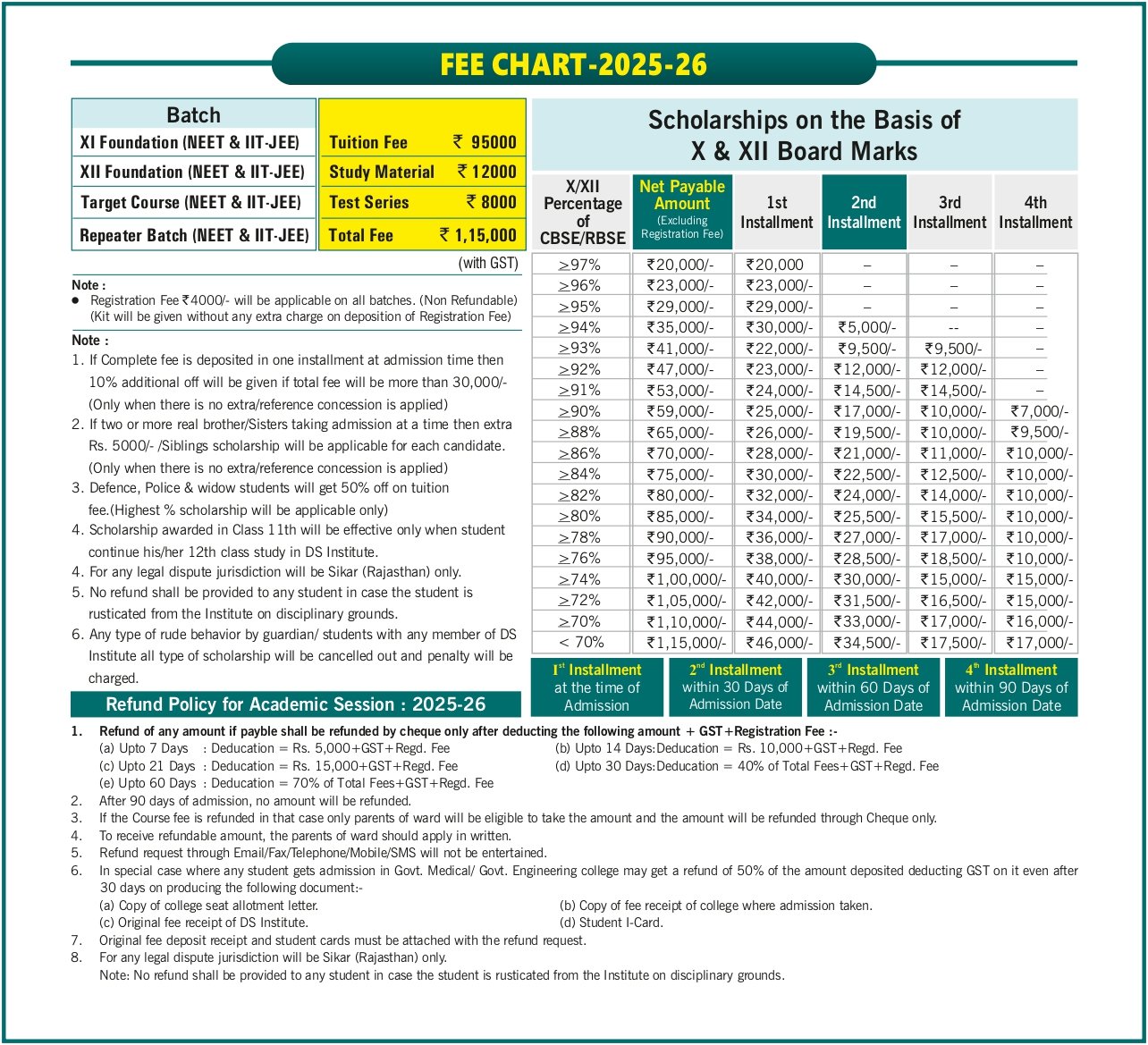 3. In case of Cheque Return, Student will not be allowed in class with immediate effect & legal action will be taken under the Negotiable Instrument Act. (Cheque Return charge 500/-)